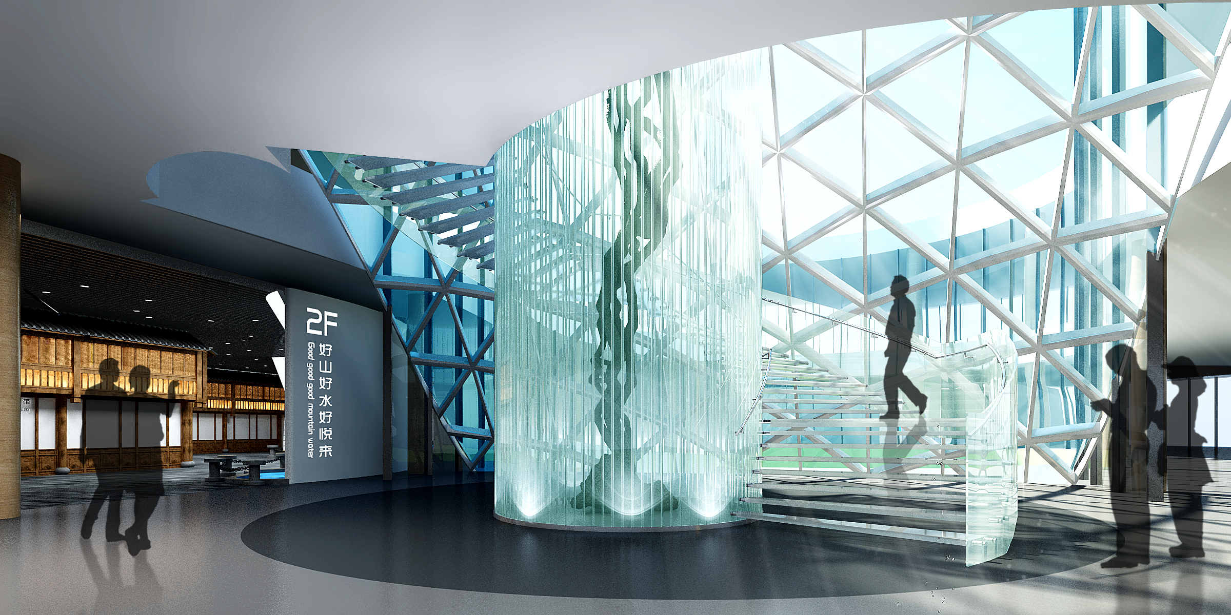 重慶仙桃國際數(shù)據(jù)谷展示體驗中心,展廳主要布局了序廳、仙桃印象、規(guī)劃宏圖、創(chuàng)新平臺、綜合產(chǎn)品體驗區(qū)、幻...